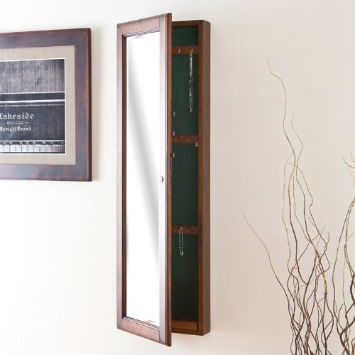 | 14 of 14 people found the following review helpful J. Robinson - See all my reviews Amazon Verified Purchase This review is from: Southern Enterprises VM5065 WallMount Mirror Jewelry Armoire I highly recommend this jewelry cabinet. I was looking for somewhere to store my jewelry to keep it all organized and keep it from getting all tangled up. This cabinet was perfect. I didn't want to take up a lot of space in my bedroom and this cabinet is very thin and I took down my existing full length mirror and put this up in it's place. It is great because you can see all your jewelry at one glance. This was perfect for me. The only complaints I have is the hardware that comes with the cabinet was not really sturdy enough, so my husband drilled additional holes and screwed in extra hole in the middle and bottom to make sure it hit a wall stud. It is a heavy cabinet. Also, he door does not open wide, it only opens 90 degrees, so you have be careful about where you hang it, that you have plenty of room on the right hand side. Also, you'll want to hang it in a well lit area so you can see everything when you open up the cabinet. I use a "clip" light on a bookshelf beside... Read more 9 of 9 people found the following review helpful L 8 of 8 people found the following review helpful Laren - See all my reviews Amazon Verified Purchase This review is from: Southern Enterprises VM5065 WallMount Mirror Jewelry Armoire A few years ago, my mom told me that a rich aunt has her jewelry organizer/safe built into her wall... we are building a house and I had the perfect spot for such an item. Got online and searched around... the types that say you can build them in are $400+ and there were no good pictures available. My husband said he didn't see any major differences between this wall mount and the others, and we decided to try to recess this one. I purchased, it arrived quickly, and is just fabulous. Exactly what I was looking for. Not a safe (though it does have a small lock), but I don't need that, just a place to organize. It's heavy and the mirror looks nice, a bonus that I can use it for double purpose (mirror and organizer) inside my closet. The outside finish looks very nice and rich, and the inside construction is very well done and well laid-out. I can't wait to finish the house and start using it!We liked it so much, my dad asked me to buy one for my mom immediately after... Read more |